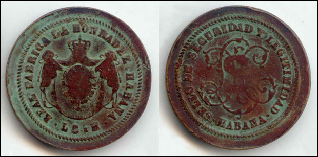 O sea estamos antes el caso de una pieza que aunque no tenía su valor indicado fue usada como moneda particular desde los inicios de la década de los 60 en Cuba. Como podemos leer en el artículo su valor era de 1.20 pesos y se entregaba en pago a una llamada “tarea” consistente en la fabricación de 5,064 cigarrillos y se puede afirmar que sin dudas fue el primer tokem usado por una empresa cubana en el siglo XIX.