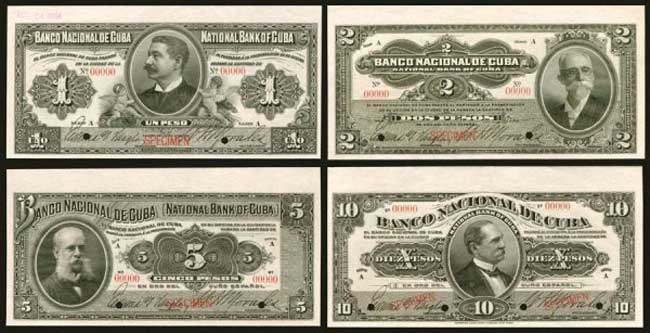 Los billetes estaban nominados en los valores de uno, dos, cinco y diez pesos, pagaderos a su presentación en la oficina del Banco en La Habana, en oro del cuño español, y habían sido impresos en los Estados Unidos por la American Bank Note Company. Presentaban en su anverso las imágenes de los siguientes personajes de la vida pública cubana: en el de un peso, Domingo Méndez Capote, presidente del Senado; en el de dos pesos, el Generalísimo Máximo Gómez Báez; en el de cinco pesos, José García Montes, Secretario de Hacienda; y en el de diez pesos, Tomás Estrada Palma, presidente de la República. En el reverso presentaba una vista del Castillo del Morro.