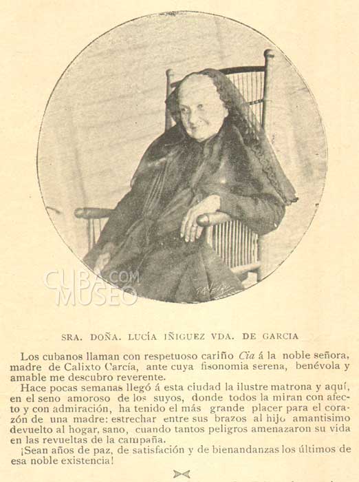 En el mes de septiembre de 1874 la visita un oficial del Ejército Español, emisario del general Concha. Va a comunicarle la captura de su hijo Calixto García en la escaramuza de San Antonio de Baja (cerca de Manzanillo). Al conocer la noticia, Lucía responde: «No es que dude de usted, general, pero yo no puedo creer que mi hijo haya caído ni caerá jamás prisionero de las tropas españolas. ¡Calixto es mi hijo, y por lo tanto no debe rendirse!». El oficial muestra a Cía un papel donde aparecía escrito que el cabecilla insurrecto Calixto García antes de caer prisionero había intentado suicidarse disparándose un balazo debajo de la barba (la bala salió por la frente, dejando una fea cicatriz). Lucía contesta: