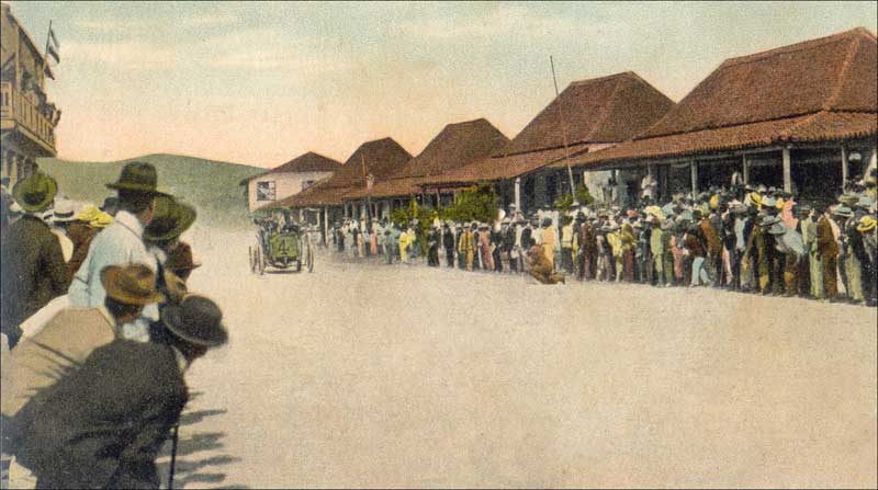 “El automovilismo llena hoy la actualidad. Por todas partes suena el taf taf de los carruajes automóviles que se disponen a llevar a sus afortunados dueños a la carretera de San Cristóbal para presenciar las interesantes Carreras que han de celebrarse hoy domingo.