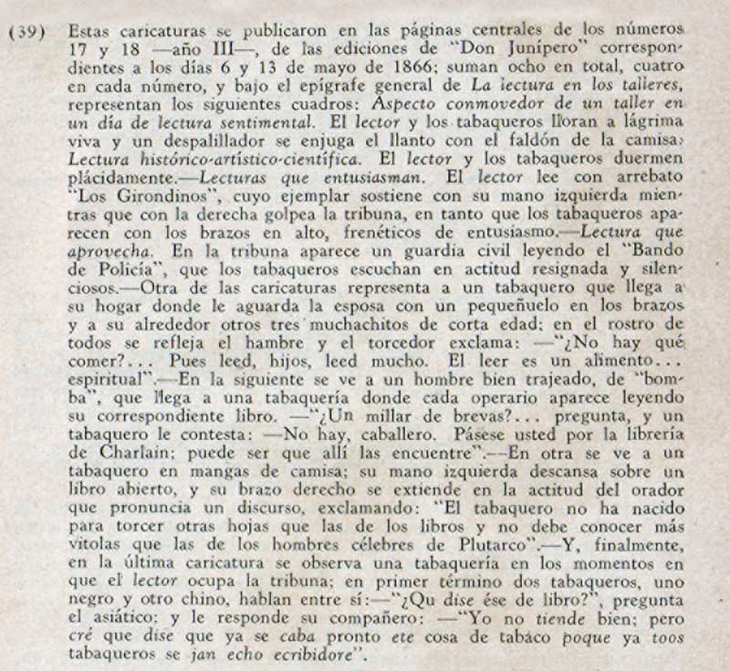 Así termina lo que nos cuenta Rivero Muñiz sobre la “Lectura en las Tabaquerías”. Esperamos que haya colmado sus expectativas.