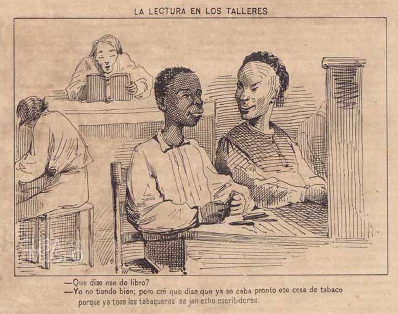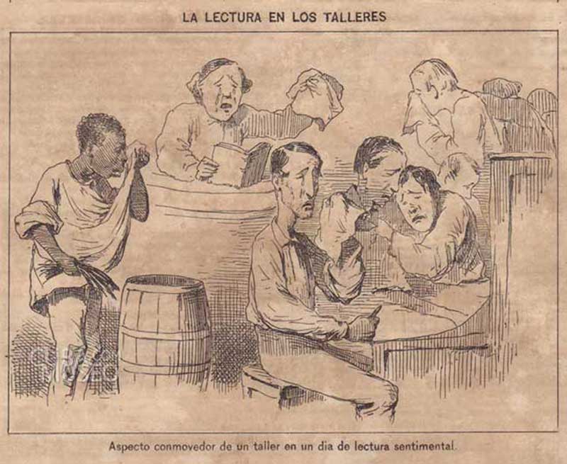 Ese continuo intercambio de ideas, noticias y conocimientos, hizo del tabaquero un tipo especial de obrero, más culto y más al tanto de lo que en el mundo ocurría que la generalidad de los trabajadores de otros oficios, circunstancia ésta a la que hubo de cooperar en grado máximo una institución sui géneris, conocida por la lectura, característica en un principio de los talleres de tabaquería y propagada más tarde a los despalillos y escogidas de tabaco en rama, medio excelente de ilustración, cuya historia nos proponemos seguir al través de las páginas de la presente monografía.