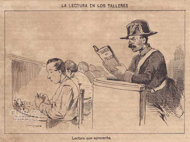 "El Siglo”, que como es sabido, abogaba no solamente en pro de la lectura en las tabaquerías, sino también de las escuelas nocturnas para los artesanos, al protestar de tan abusiva medida señalaba el caso de que en los talleres del presidio de La Habana, cuyo director lo era un coronel apellidado Montaos, se leía. Y "si allí – decía -, en un terreno ya depauperado por el cultivo continuado del mal y de la depravación, produce opimos frutos la semilla de la instrucción regada a vuelo, como pudiera decirse, en las horas del trabajo, ¿cuáles y cuán abundantes no serían sus cosechas al caer sobre una tierra no contaminada aún por las raíces del vicio y de la perversidad?”