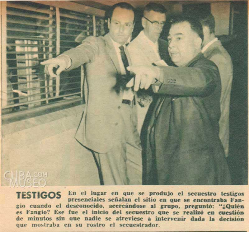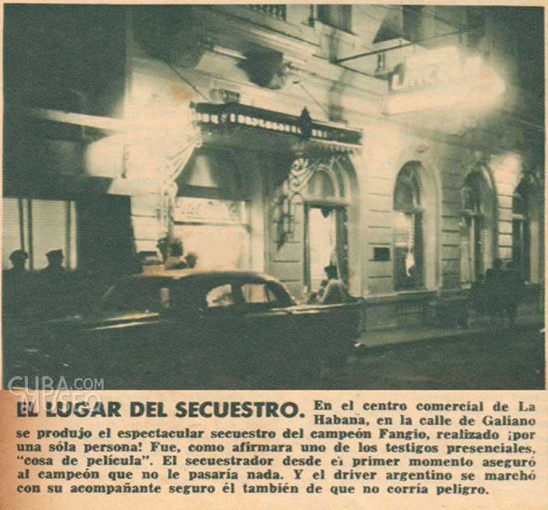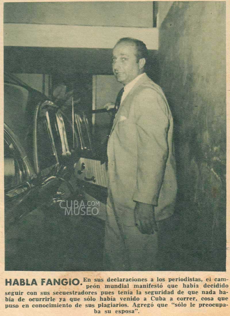 En esta página veremos los detalles del secuestro de Juan Miguel Fangio por miembros del Movimiento 26 de Julio. Claro que no es este un tema al que se le pueda añadir nada nuevo pues como todos los sucesos tan espectaculares sobre él abundan referencias en la red. Sin embargo la reproducción de una extensa crónica publicada por la revista Bohemia a raíz del secuestro nos ha motivado a preparar este trabajo. Vale la pena hacerlo por su inmediatez y las buenas imágenes que contiene.