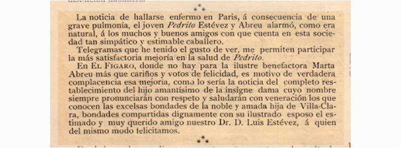 Julio 12 – Noticia de que Pedrito Estévez está enfermo en Paris… (Imagen en Galería: 1896-07-12)