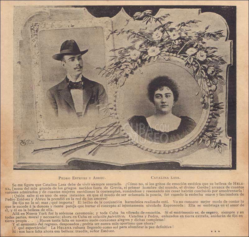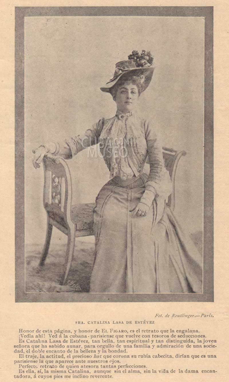 Tratando de ser escuetos y no aventurar opiniones o narrativas equivocadas podemos decir que es esta una historia de amor y pasiones encontradas que se desarrolló en el seno de lo más selecto de la burguesía criolla en los primeros años de la república. Catalina, matancera de nacimiento, se trasladó a la ciudad de la Habana a finales del 19th. En 1894 participó en el primer certamen de belleza convocado por el Fígaro donde resultó elegida dama de honor. A partir de entonces su aureola cobró fuerza alimentada por Enrique Fontanills y Aniceto Valdivia (Conde Kostia) cronistas de dicha revista, que no perdían ocasión para alabar sus cualidades en sus escritos semanales. En 1898, durante su estancia como emigrada en Estados Unidos, conoció y contrajo matrimonio con Pedro Estévez Abreu, hijo de Luis Estévez, futuro vicepresidente de la Republica y Marta Abreu, la gran benefactora villaclareña. A partir de entonces su vida transcurrió entre actividades de la alta sociedad, periodos de embarazo en los que concibió tres hijos y continuos viajes a Paris, donde a finales del año 1906 abandonó a su esposo y se unió a Juan Pedro Baró, rico hacendado matancero con quien en un momento indeterminado había establecido una relación extramarital. Se mantuvo fuera de Cuba hasta que en 1917 una nueva ley le permitió obtener el divorcio de su primer matrimonio y regresar. Ya aquí se incorporó de nuevo a la vida social y su nuevo esposo construyó para ella una casa fabulosa, que se inauguró en 1926, hoy llamada “Casa de la Amistad”. Falleció en 1930 y sus restos descansan en un lujoso mausoleo, preparado expresamente para ella en el Cementerio de Colon.