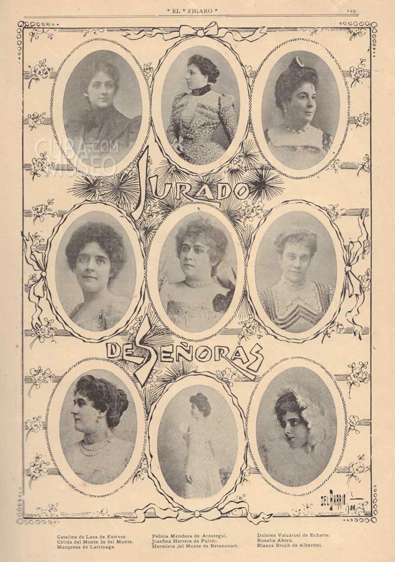 Los escrutinios serán hechos semanalmente por un Jurado de señoras, compuesto de las distinguidas damas, Excma. Sra. Aurora Rivera de Arderíus, Rita Du-Quesne del Valle, Condesa de Fernandina, Serafina Gálvez de Sarachaga, Gélida del Monte de Del Monte y Adriana Armand de Lavín.