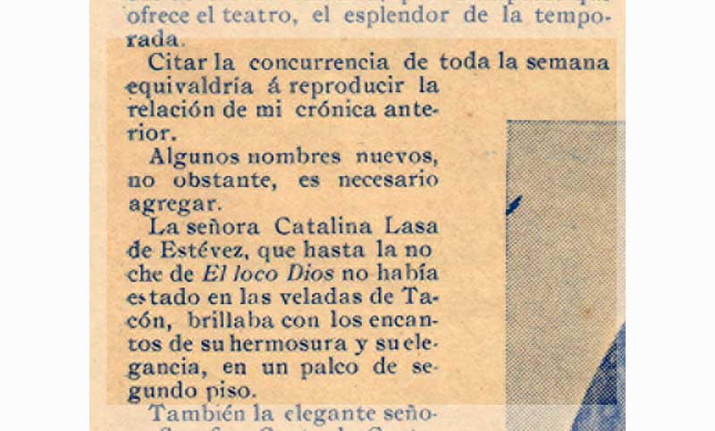 Este escrito es importante. Aparece firmado por Aniceto Valdivia (el Conde Kostia). En esos tiempos ella era una desconocida por lo que no hay dudas de que es sencillamente su hermosura lo que mueve al cronista a dedicarle tan exaltados comentarios.