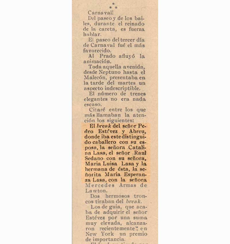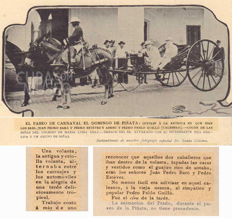 Al principio decíamos que este año nos traería cosas sorprendentes. He aquí una de ellas. El texto de la crónica es claro: estamos viendo a los dos Pedros juntos y disfrazados, en una volanta que causa sensación en el carnaval habanero. Es esta la prueba final de lo que habíamos imaginado hacía tiempo….ambos eran grandes amigos!!. Y posiblemente desde los viejos tiempos en Paris.