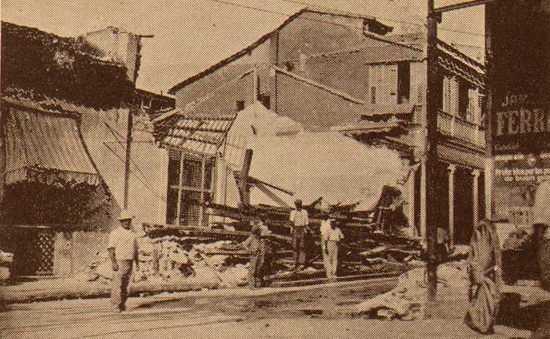 Al salir el sol se pudo ver en toda su intensidad la hecatombe producida por el terremoto. Montones de piedras, maderas y bloques de cemento interrumpían el tránsito, las casas que se mantenían en pie se veían llenas de grietas, mientras las cornisas de los grandes edificios se hallaban caídas o amenazaban con el derrumbe. Toda la ciudad ofrecía el triste aspecto de las grandes tragedias naturales.